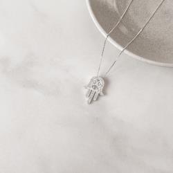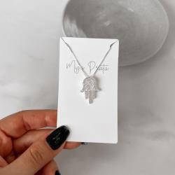 Colar mão cravejada trabalhada 23mm 45cm | Mya Prata