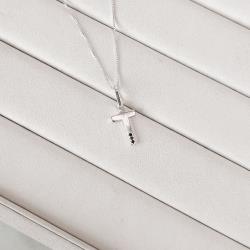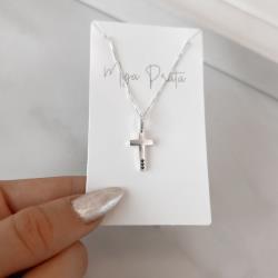 Colar pingente cruz com zircônias ônix 17mm 45cm | Mya Prata
