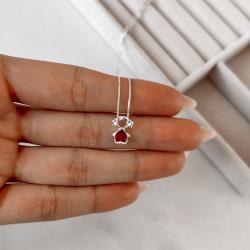 Colar menina com zircônia coração cereja 12mm 45cm | Mya Prata
