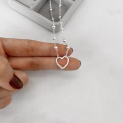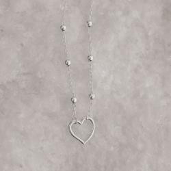 Choker entremeio bolas e coração vazado 14mm com extensor | Mya Prata