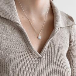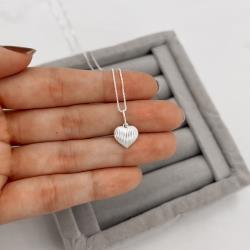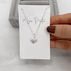 Colar pingente coração com vinco 11mm 45cm | Mya Prata