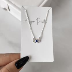 Colar olho com zircônia azul 12mm corrente cadeado 40cm com alongadora | Mya Prata