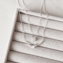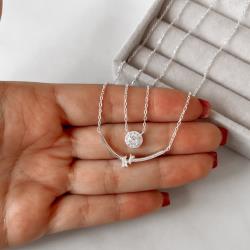 Colar duplo botão cravejado 7mm 40cm e bastão com zircônias 27mm 45+5cm | Mya Prata