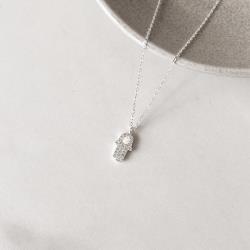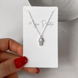 Colar pingente mão cravejada detalhe colorido 12mm corrente cadeado 40+5cm | Mya Prata