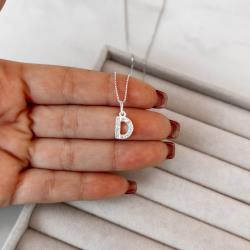 Colar pingente letra D cravejada 10mm 45cm | Mya Prata