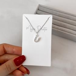 Colar pingente letra U cravejada 9mm 45cm | Mya Prata