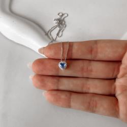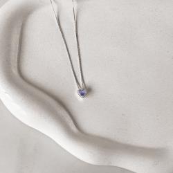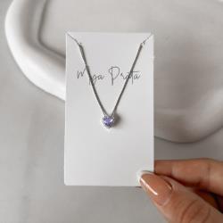 Colar zircônia coração lilás com cravejado 7mm 40cm | Mya Prata