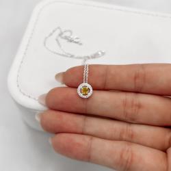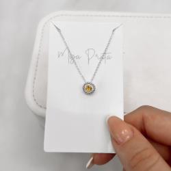 Colar zircônia redonda amarela com cravejado 9mm corrente cadeadinho 45cm | Mya Prata