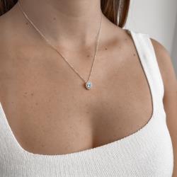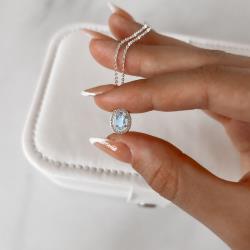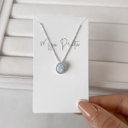Colar zircônia oval azul claro com cravejado 11mm corrente cadeadinho 45cm | Mya Prata