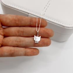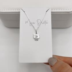 Colar pingente gato detalhe zircônia 11mm 45cm | Mya Prata