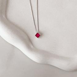 Colar zircônia losango cereja 10mm 45cm | Mya Prata