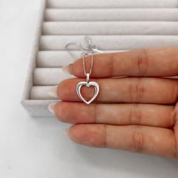 Descrição: Colar pingente coração vazado com zircônia 14mm 45cm fabricado(a) em prata