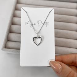 Colar pingente coração vazado com zircônia 14mm 45cm