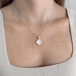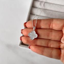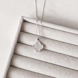 Colar pingente trevo cravejado 15mm corrente cadeadinho 45cm | Mya Prata