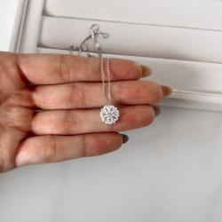 Colar flor cravejada trabalhada 15mm 45cm | Mya Prata