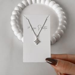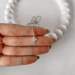 Colar pingente flor cravejada 14mm 45cm | Mya Prata