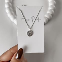 Colar pingente medalha letra G cravejada 15mm 45cm | Mya Prata