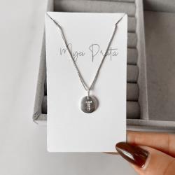 Colar pingente medalha letra T cravejada 15mm 45cm | Mya Prata