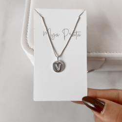 Colar pingente medalha letra V cravejada 15mm 45cm | Mya Prata