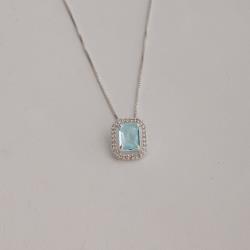 Descrição: Colar zircônia retangular azul claro com cravejado 13mm 45cm fabricado(a) em prata