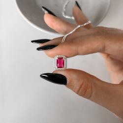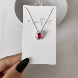 Colar zircônia retangular cereja com cravejado 13mm 45cm | Mya Prata