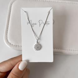 Colar pingente botão cravejado 11mm 45cm | Mya Prata