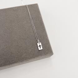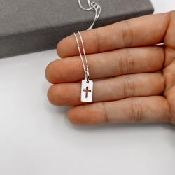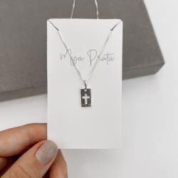 Colar pingente placa cruz vazada 13mm 45cm | Mya Prata