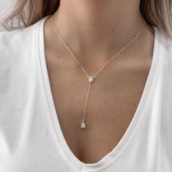 Gravatinha zircônias oval e gota 40+5cm | Mya Prata