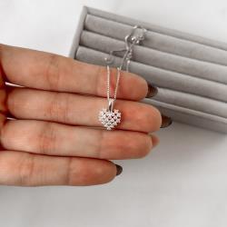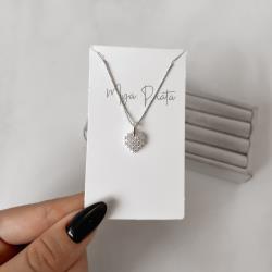 Colar pingente coração rendado cravejado 10mm 45cm | Mya Prata
