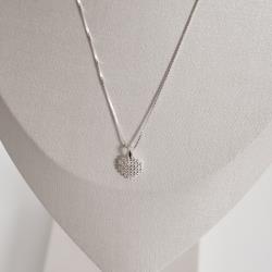 Descrição: Colar pingente coração rendado cravejado 10mm 45cm fabricado(a) em prata