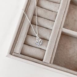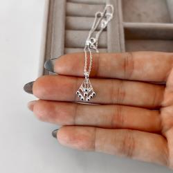 Colar Nsa. Sra. Aparecida vazada detalhe cravejado azul 17mm corrente cadeadinho 45cm | Mya Prata