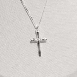 Descrição: Colar pingente cruz escrito Amém 26mm 45cm fabricado(a) em prata