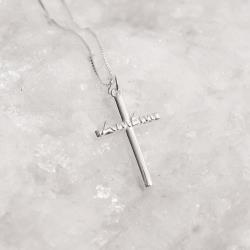 Colar pingente cruz escrito Amém 26mm 45cm | Mya Prata