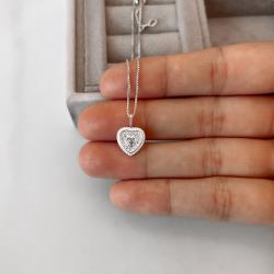 Colar pingente coração cravejado detalhe zircônia coração 11mm 45cm | Mya Prata