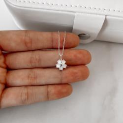 Colar pingente flor cravejada cristal 10mm 45cm | Mya Prata