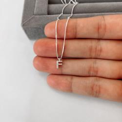 Colar pingente letra F cravejada 6mm 40cm | Mya Prata