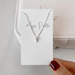 Colar pingente letra T cravejada 6mm 40cm | Mya Prata