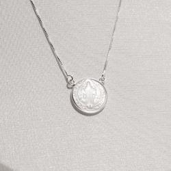 Colar entremeio medalha São Bento madrepérola 16mm 45cm | Mya Prata