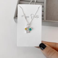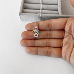 Colar entremeio círculo pingentes estrela vazada cravejada, zircônias amarela e acqua corrente cadeadinho 40+5cm | Mya Prata