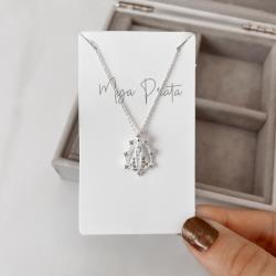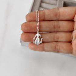 Colar medalha Nsa. Sra. Aparecida vazada cravejada 19mm corrente cadeadinho 45cm | Mya Prata
