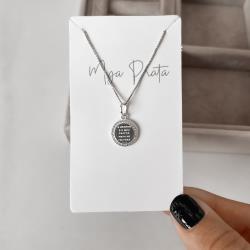 Colar pingente medalha Salmo 23:1 cravejado 12mm 45cm | Mya Prata