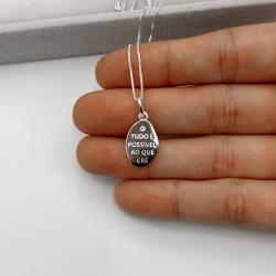 Colar pingente medalha tudo é possível ao que crê 15mm detalhe zircônia 45cm | Mya Prata