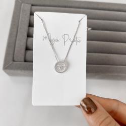 Colar medalha Espírito Santo cravejado 12mm 45cm | Mya Prata