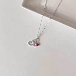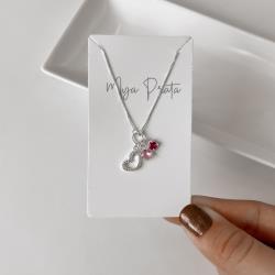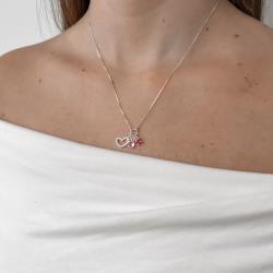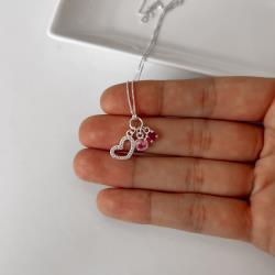 Colar entremeio círculo pingentes coração de lado vazado cravejado, zircônias rosa e cereja v12 45cm | Mya Prata