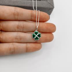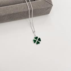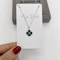 Colar pingente trevo resina 12mm corrente cadeadinho 45cm | Mya Prata