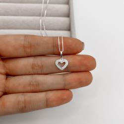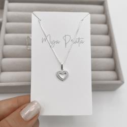 Descrição: Colar pingente coração vazado com cravejado 10mm 40cm fabricado(a) em prata