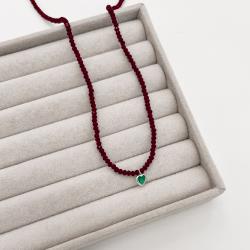 Choker cristal marsala 3mm pingente zircônia coração turquesa 6mm 40+5cm | Mya Prata