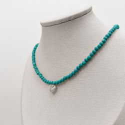 Choker cristal turquesa 4mm pingente zircônia coração cristal 8mm 40+5cm | Mya Prata