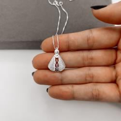 Descrição: Colar Nsa. Sra. Aparecida trabalhada cravejada 21mm 45cm fabricado(a) em prata