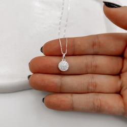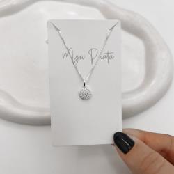 Descrição: Colar pingente botão com zircônias 8mm 40cm fabricado(a) em prata